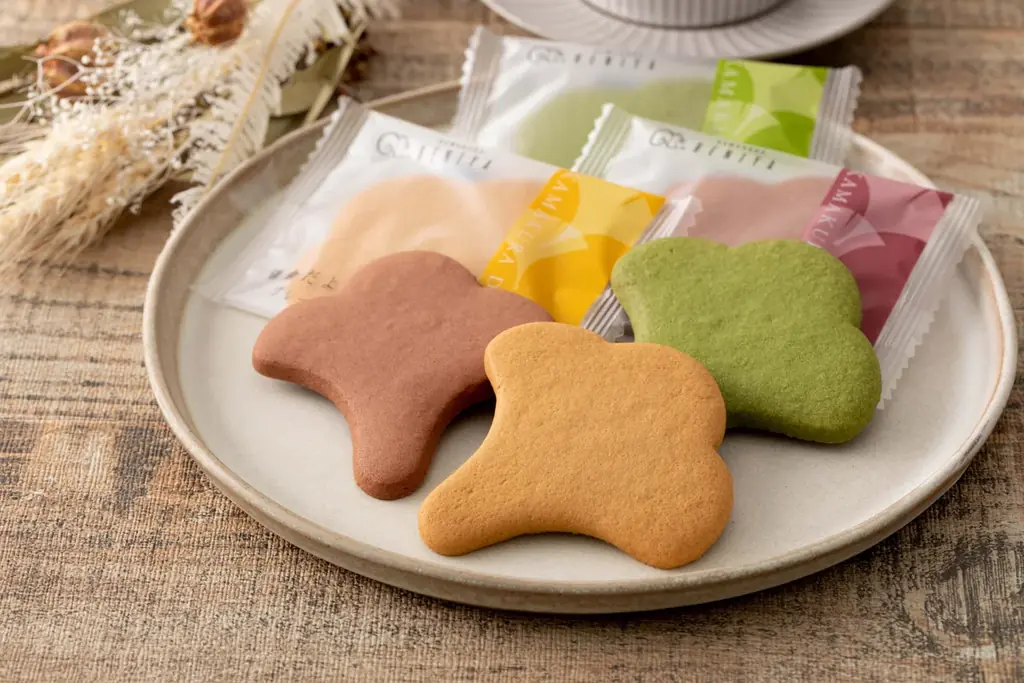 鎌倉の風情を三種類のサブレで表現した詰め合わせです。内容は「プレーン」「あずき」「抹茶」が各2枚ずつ。プレーンはバターとはちみつをベースにした風味、あずきは十勝産あずきを用いて鎌倉彫のカラーを表現、抹茶は西尾産抹茶で青葉や若葉の色合いを表しています。軽やかな食感と控えめな甘さが特徴です。