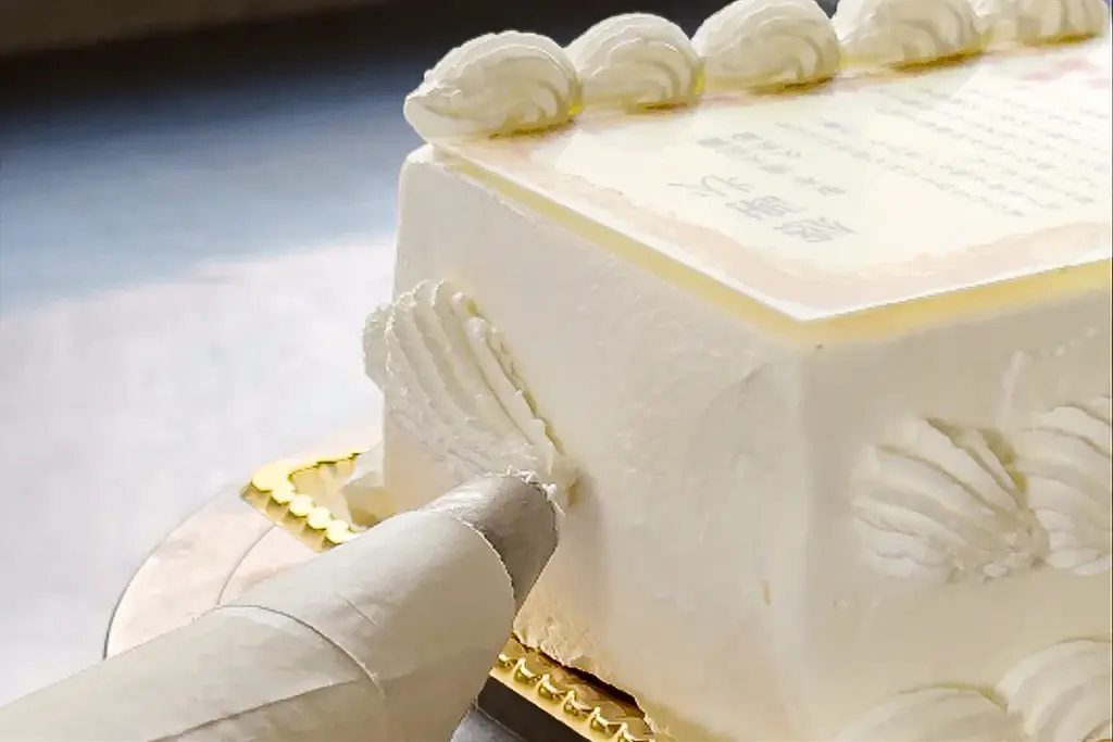 最終の装飾は、一絞りごとに「おめでとう」の気持ちを込めたクリームワーク、鮮やかな苺、桜のホワイトチョコレートやミントの飾りを添えて完成します。印刷には食用インクを使い、特殊な印刷技術で文字や柄を美しく再現します。印刷部分も味に配慮されています。