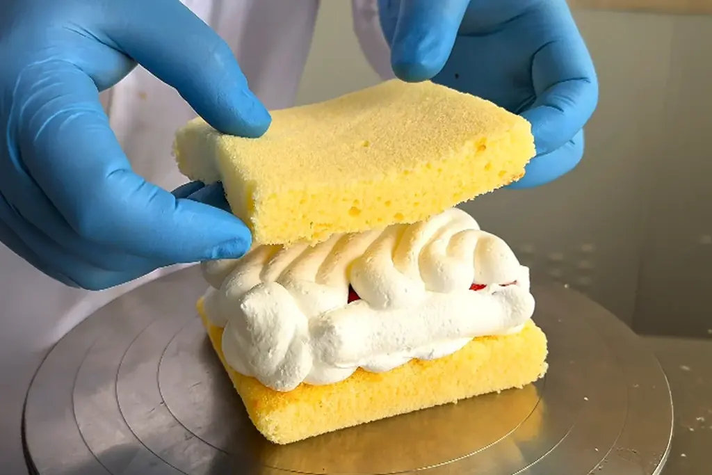 土台となる角型の苺ショートケーキは、創業以来の定番商品を特別仕様で提供するものです。二段のスポンジの間にフレッシュな苺と濃厚な九州産生クリームをたっぷりとサンドし、高くふっくらとした仕上がりで重量感のある食べ応えを実現しています。