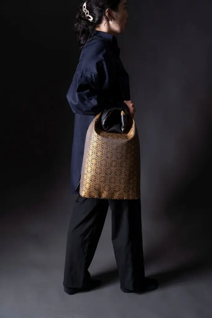 展示される製品は、福山で織られた金襴の残布をアップサイクルして製作した一点物の商品群です。日常使いを前提に設計・再構築されたプロダクトは、伝統素材の表情をそのままに持ちつつ、現代の利便性を兼ね備えています。