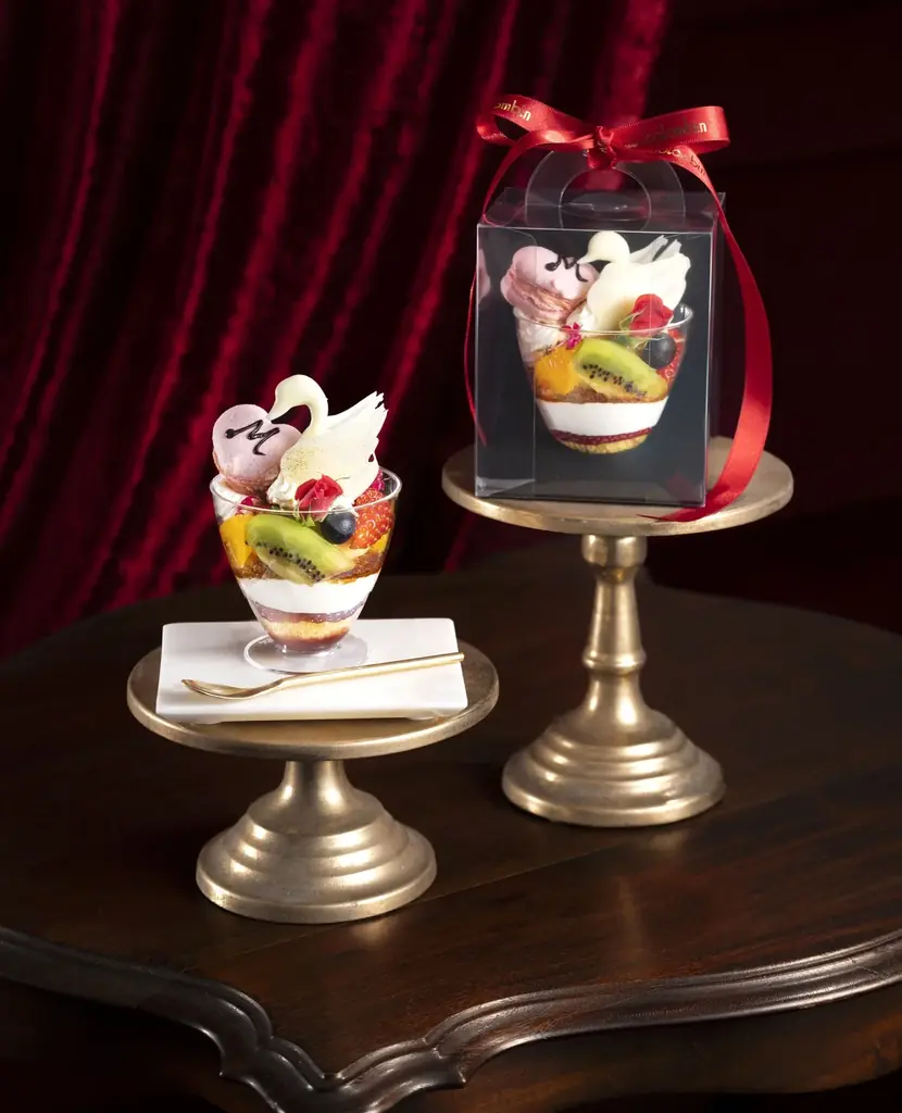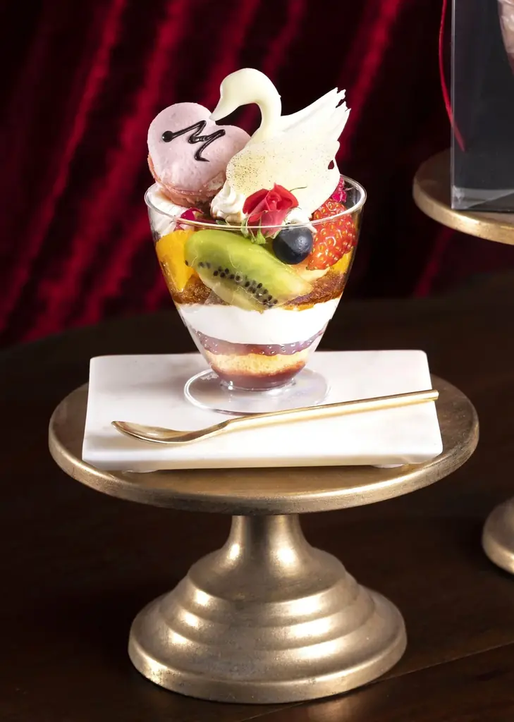 | 主な構成・装飾 | ラズベリーソース、ジェノワーズ、シャンティ、旬の苺、プリン(卵・牛乳・砂糖・バニラ)、チョコスワン、ベリーマカロン(”M”)、食用花、オレンジ、キウイ、ブルーベリー 等 |