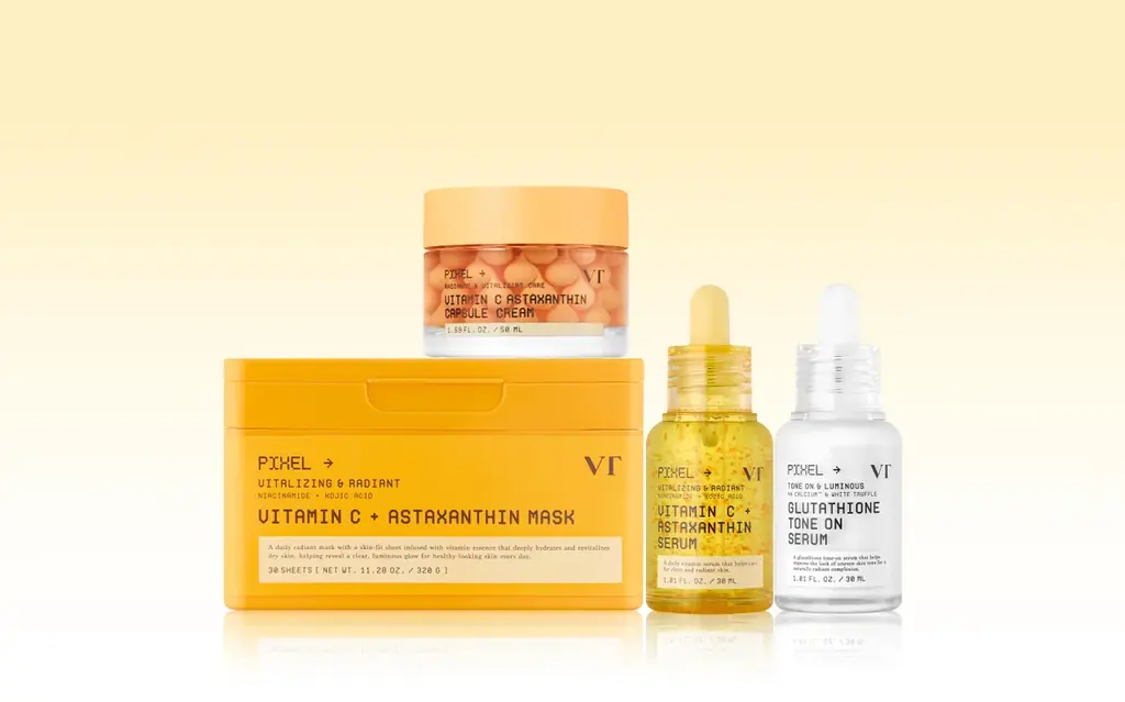 VTが2026年の新ラインとして発表した「ピクセルライン」は、ビタミンC※1とアスタキサンチン※2の組み合わせを特徴とするツヤ光彩ケア(うるおいによる透明感ケア※3)を目指すシリーズです。アスタキサンチンは従来は比較的高価格帯製品に使われることが多い成分ですが、今回のラインナップでは日常使いしやすい価格帯で提供されます。
