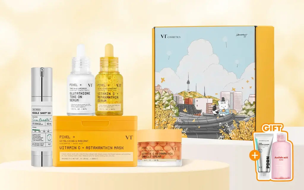 VTは今回、肌悩みに合わせて選べるセットを7種類用意しました。各セットは割引価格で提供され、パッケージは韓国の人気イラストレーター、ぺ・ソンギュさんとのコラボレーションによる暖かいタッチのデザインが採用されています。