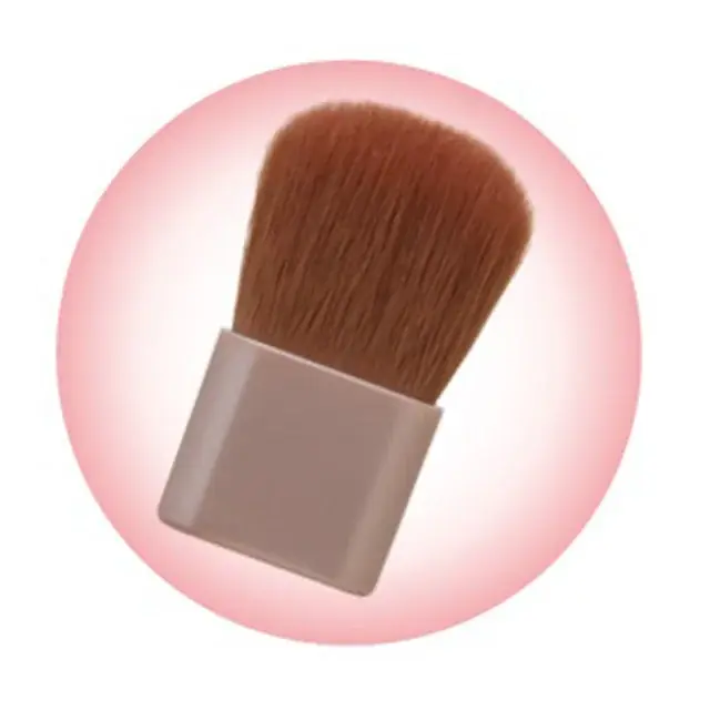 使用方法としては、チーク部分を付属のブラシで2〜3回ほど円を描くように混ぜ、頬の高い部分などツヤを出したい箇所にグロウパウダーを重ねるスタイルが推奨されています。付属ブラシは毛量がたっぷりの“ふわふわブラシ”で、付属品とは思えない使用感が特徴です。