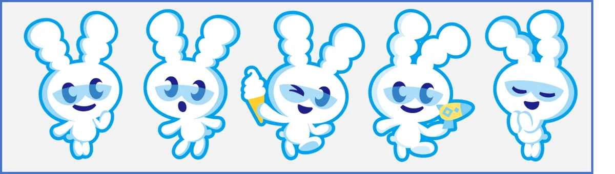 しおバニーちゃんのビジュアルにはユニークな設定があり、体はマシュマロでできているという設定です。手に持つおもちゃのレーザーガンで塩の結晶を届けるという描写がされており、個包装の裏面にはそれぞれ異なる口の形がデザインされています。