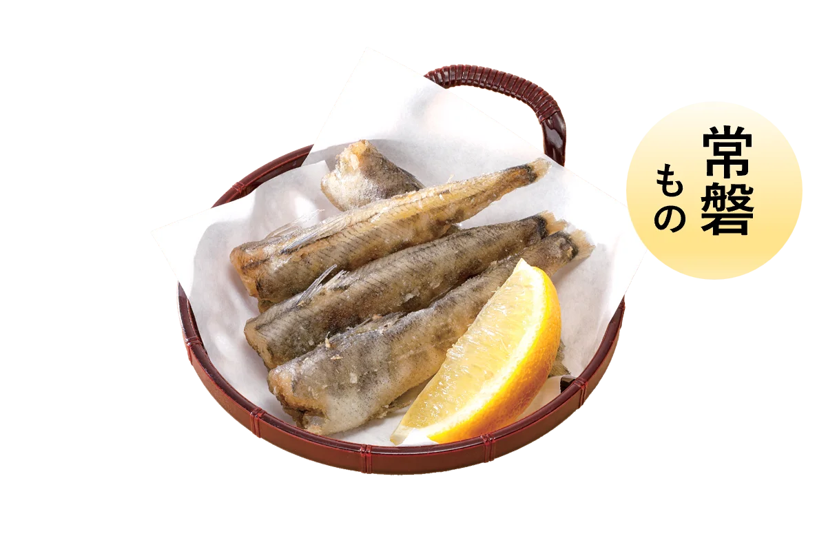 - めひかりの唐揚げ:450円(税込495円)。脂がのった白身のふんわりとした食感。皮が柔らかく丸ごと食べられる一品。