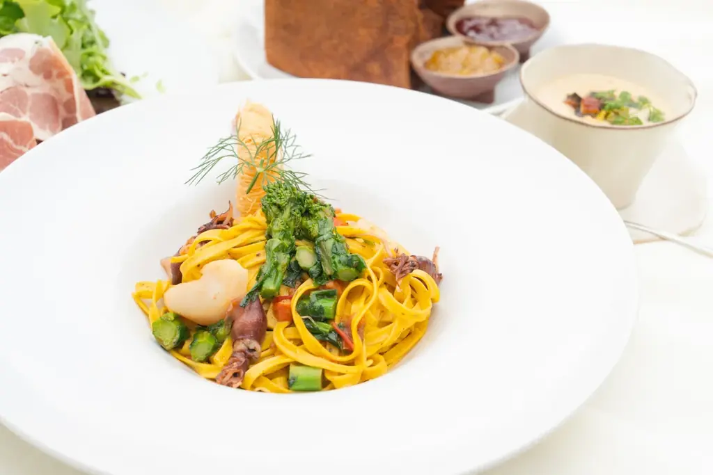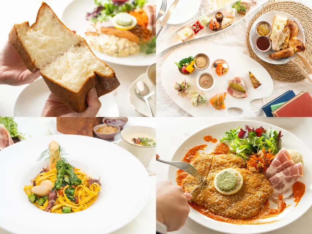 コラボレーションランチは4種類のシェフ特製メニューが用意され、それぞれに『パンとエスプレッソと異人館』のパンを組み合わせて提供されます。コーヒーやお酒と合わせて楽しめる軽めのブランチメニューから、しっかり食事を希望する方向けのメインが付くメニューまで、用途に応じた選択肢が揃えられています。