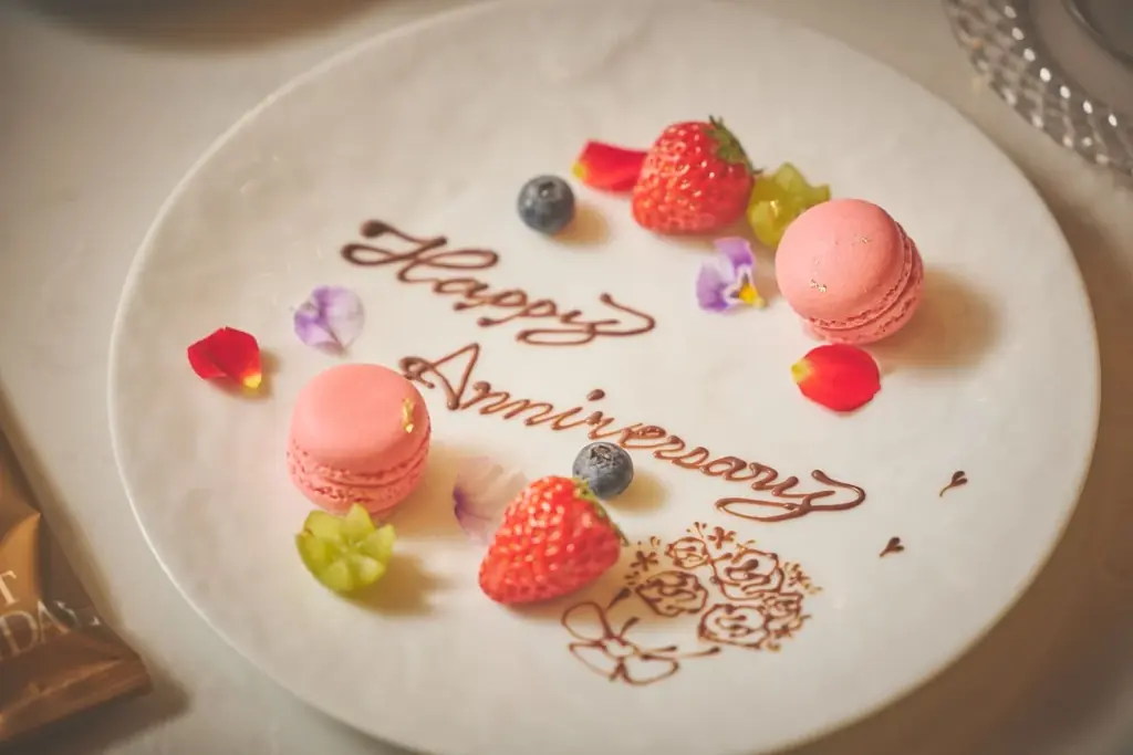 - 申込期限:ナンバーケーキは予約日の7日前、アニバーサリープレートは3日前、その他オーダーケーキは1日前。持ち帰り不可。プレートの文字は事前予約で変更可能。ショートケーキ 2,909円~、アニバーサリープレート 2,000円、ナンバーケーキ 1文字 4,000円(※消費税・サービス料15%込と記載の項目あり)。