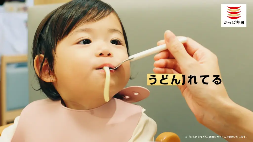 加えて、かっぱ寿司の店舗設計はベビーカーでの来店が可能な「ゆったりした席」を設けることや、子どもが食べやすいように「短く切ったうどんの提供」などの配慮がある点をCMでも紹介しています。