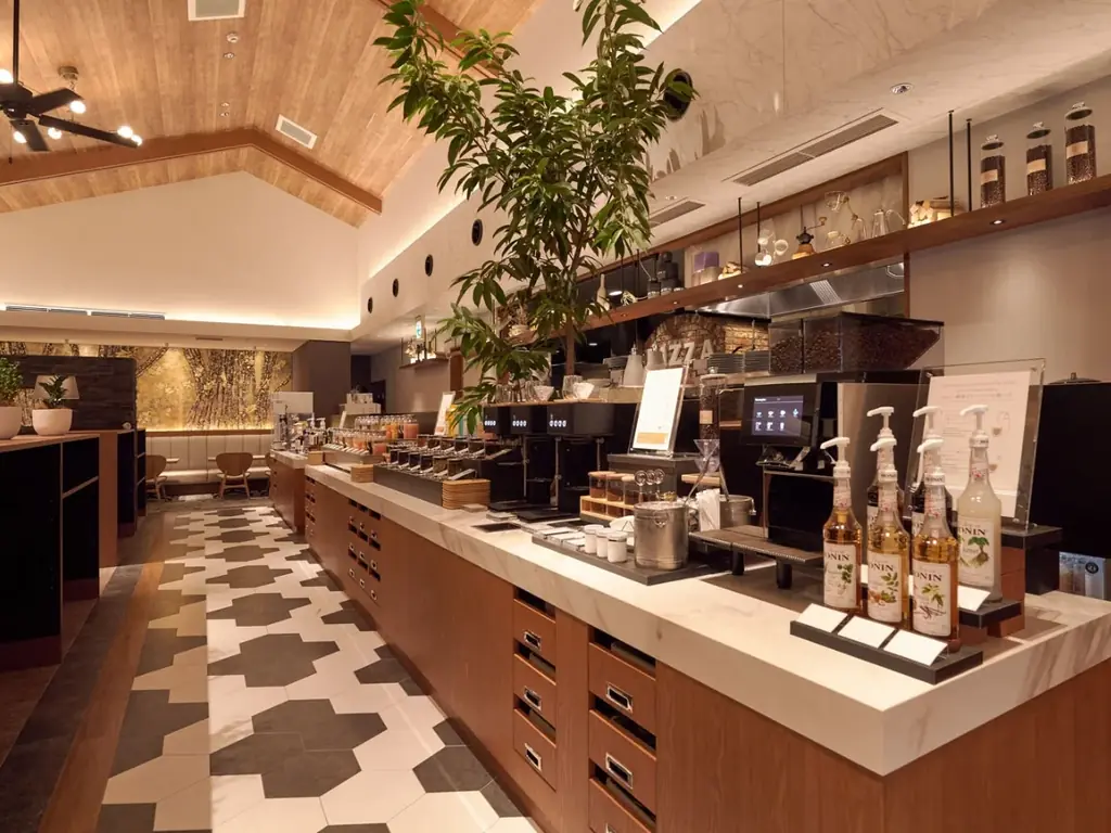 ドリンクは約12mの『インペリアルドリンクバー』が用意され、ドリップブリューの本格珈琲、エスプレッソアレンジラテ、12種の茶葉、モナン社のシロップで楽しむフレーバーソーダやフルーツジュースなど、全48種のメニューから自由に選べます。セットにはドリンクバーが付帯するため、料理と合わせて多様な飲み物を楽しめます。
