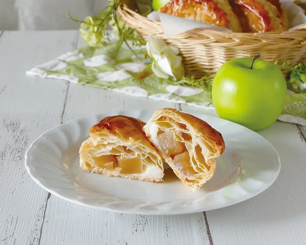 ダイス型にカットしたグラニースミスの果肉を、さっぱりとした甘みのヨーグルトクリームと合わせて、サクサクのパイ生地で包んだ商品です。ホットな状態でもすっきりとした味わいが保たれる設計になっています。