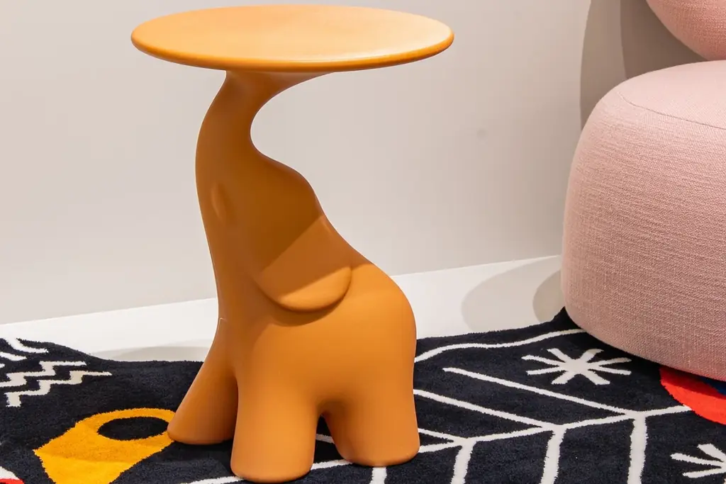 パコはゾウの長い鼻が円形天板を支えるサイドテーブルで、ユニークな形状が特長です。リサイクル可能なポリエチレン製のため軽量で耐久性があり、屋内外を問わず使用できます。
