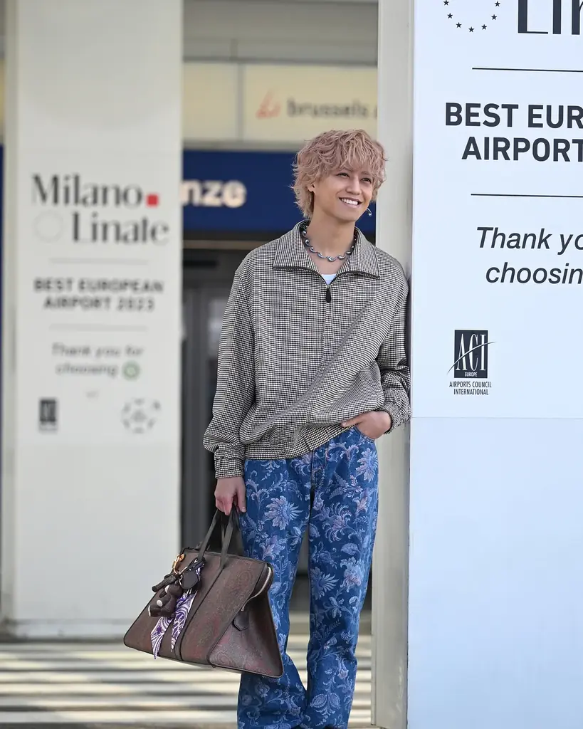 髙橋海人が纏うエトロのエアポートルック — ミラノ到着の一瞬