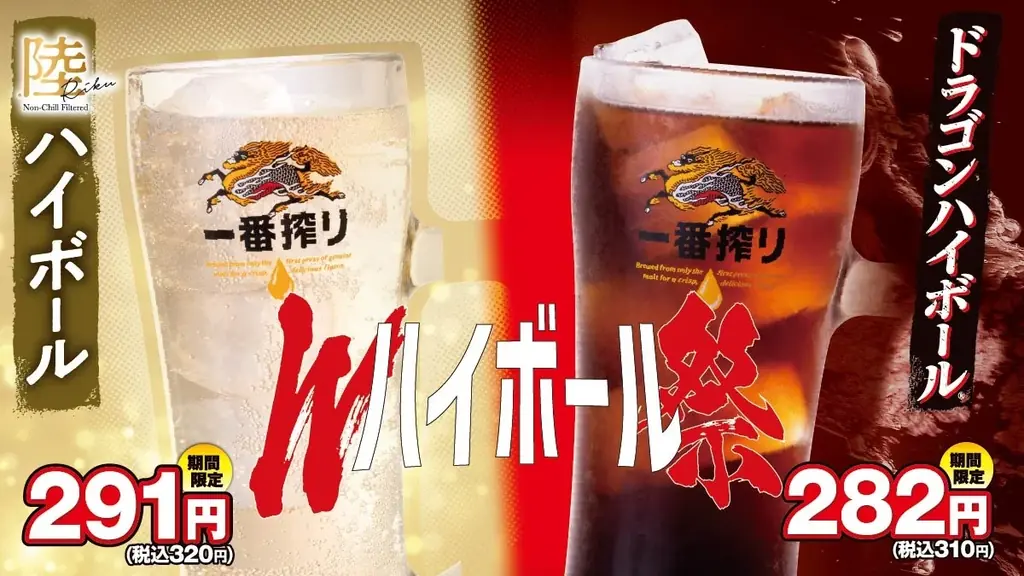 | 陸ハイボール価格(通常→期間) | 通常310円(税込340円)→291円(税込320円) |