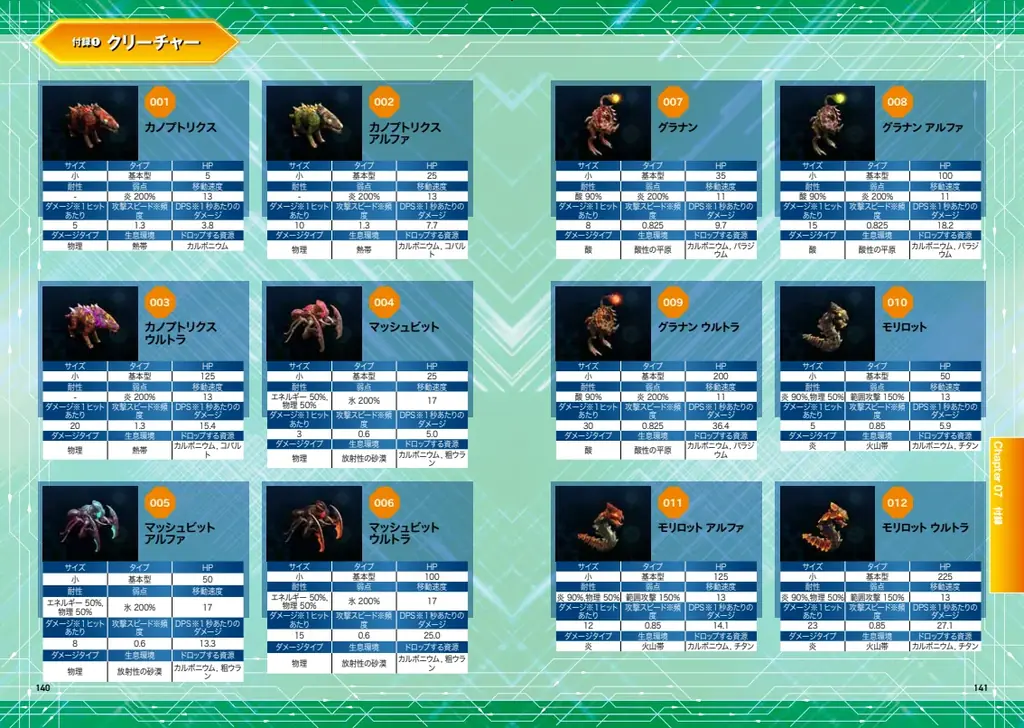 さらに、EXOR Studiosの協力により提供された詳細な内部データベースが収録されている点が注目される。敵クリーチャーのHPや耐性、弱点属性、武器ごとのDPS比較など、従来は門外不出とされてきた情報が明示され、攻略の精度が飛躍的に高まる内容となっている。