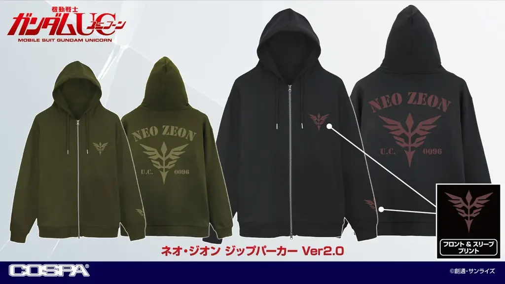 | 機動戦士ガンダムUC(ユニコーン) | ネオ・ジオン ジップパーカー Ver2.0 | 2026年4月下旬予定 | M/L/XL/XXL | BLACK/MOSS | 8,800円 |
