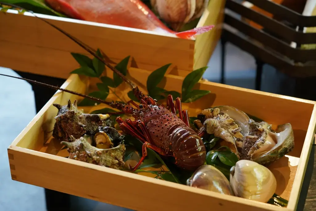 - 食材例:伊勢海老、活鮑、北寄貝、厳選国産和牛フィレ