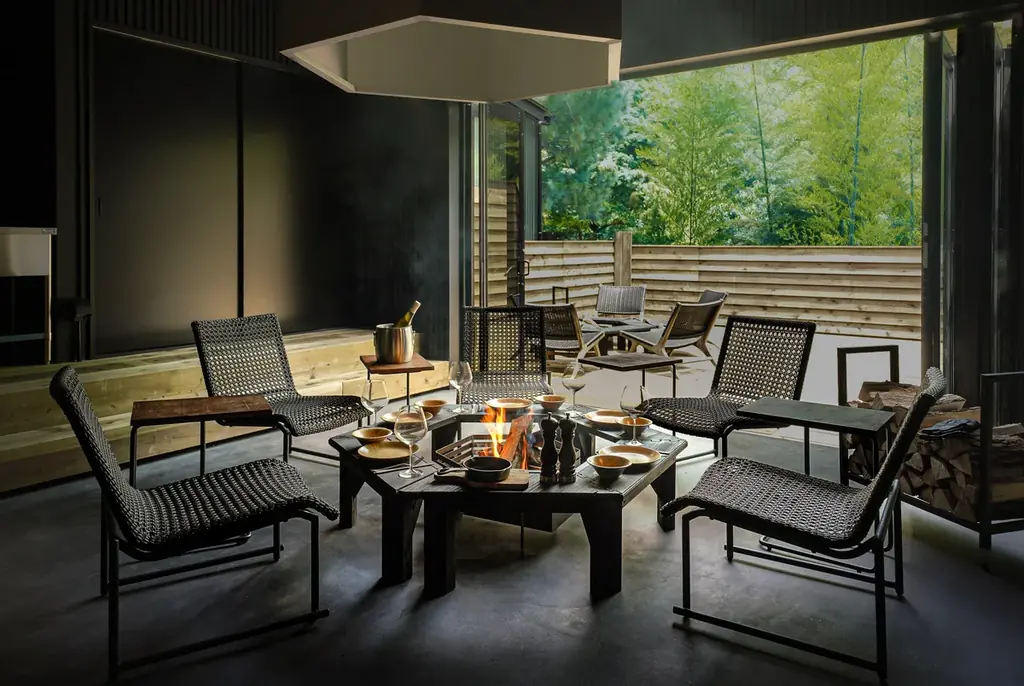各ヴィラは全天候で焚火が楽しめる「インナーファイヤーピット」を備え、雨天や寒い夜でも快適に焚火ダイニングを体験できるよう設計されています。屋外デッキはゆとりのある広さを確保しており、星空を見上げる時間や朝の清々しい空気の中での瞑想、ヨガ、読書などそれぞれの過ごし方が可能です。