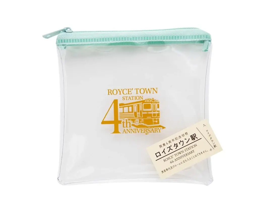 - ポーチ:ロイズタウン駅4周年記念ロゴ入りクリアポーチ(縦約13.5cm×横約13.5cm)。JR北海道商品化許諾済。