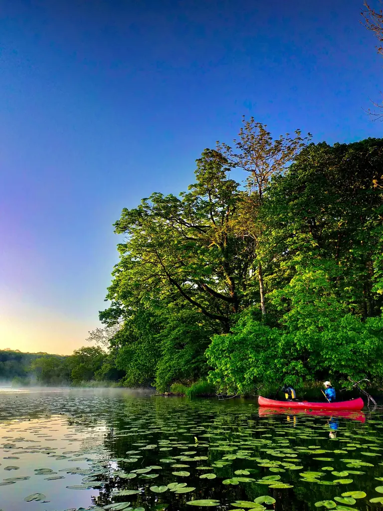 庭山さんは受賞の喜びを述べつつ、早朝にポロト湖に差し込む光の時間帯が最も魅力的であると語っています。作品はポロト湖の静謐(せいひつ)さと、その湖面に活動するカヌーの存在が生む物語性を描いています。鮮やかな緑と赤いカヌーの色彩対比が映える一枚です。