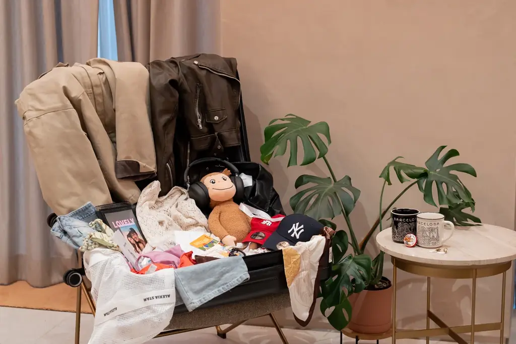 会場のロビーには「旅ブース」を設置し、番組内で使われたアイテムや旅の記憶を思い起こさせる展示を行いました。これにより、来場したゲストがまず旅の情景に触れてから式の進行に入れるよう動線を設計しています。
