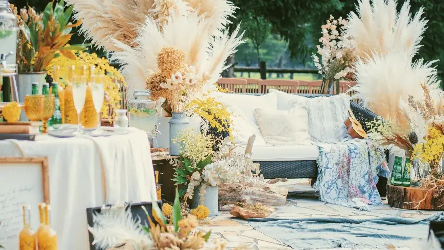 - ミモザコーディネイト展示:ウェルカムアイテムや装飾の実展示