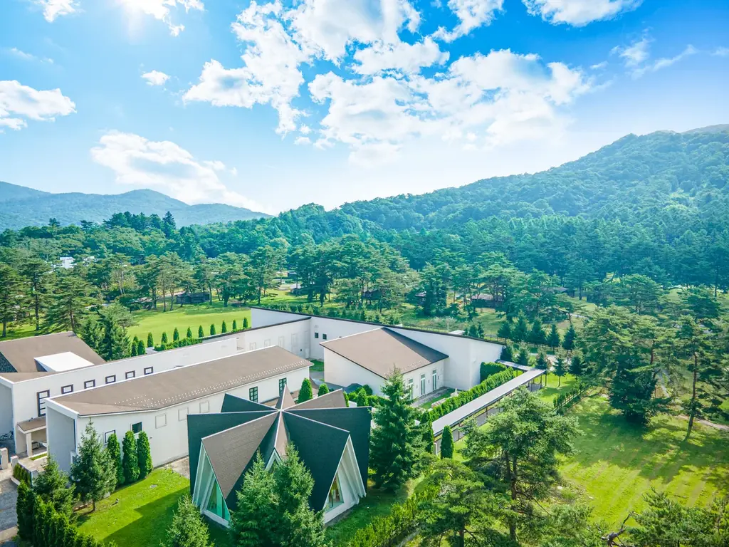 フォレスターナ軽井沢は軽井沢駅前に広がるプリンスグランドリゾート軽井沢内に位置する結婚式場です。館内には2つのチャペル、1つのガーデン挙式会場、4つの披露宴会場を有しています。