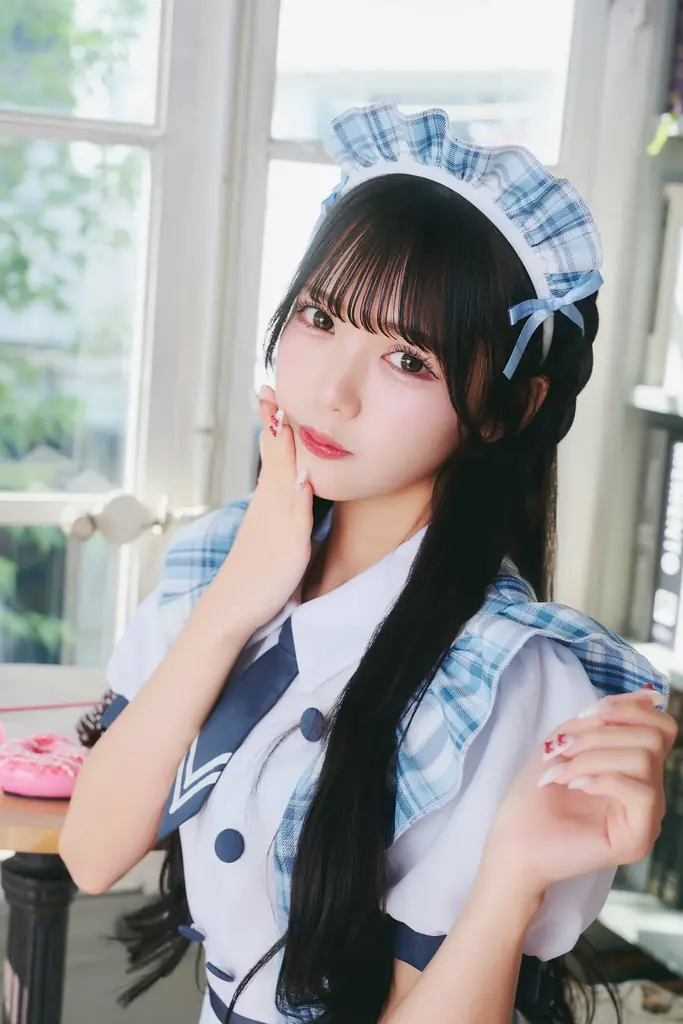 パティスリーメイドは水色チェック柄を採用した、綺麗めの印象を持つメイド服です。ワンピース型で露出度が抑えられており、幅広い層に着用が想定されています。