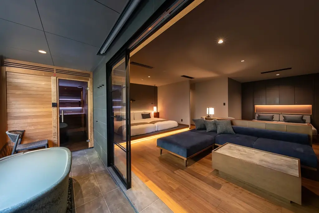 那須温泉 森旬の籠の客室数は20室で、全室に半露天風呂が付帯しています。うち6室はサウナ付きの客室で、デラックスツインにはプライベートサウナ付きの客室も用意されています。温泉は源泉掛け流しの半露天風呂が強調されており、食事と合わせて温泉体験を提供することが想定されています。