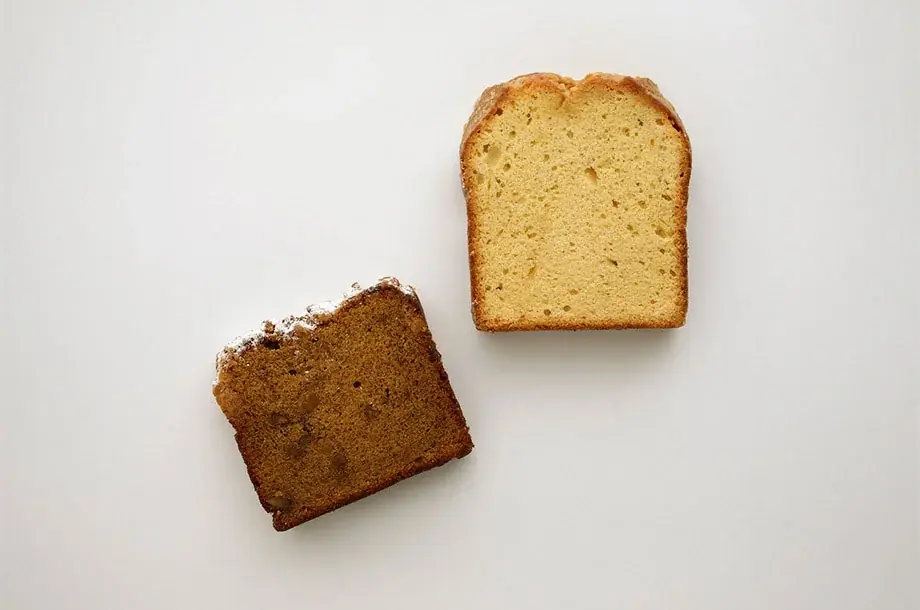 | ノワ・ドゥ・ブール(本館地下1階 洋菓子) | キャラメルバナナケーキ(マスコバド使用)および入野砂糖のキャトルカール | 左:100gあたり 594円(通年商品) 右:100gあたり 810円(1カット約60g-80g) |