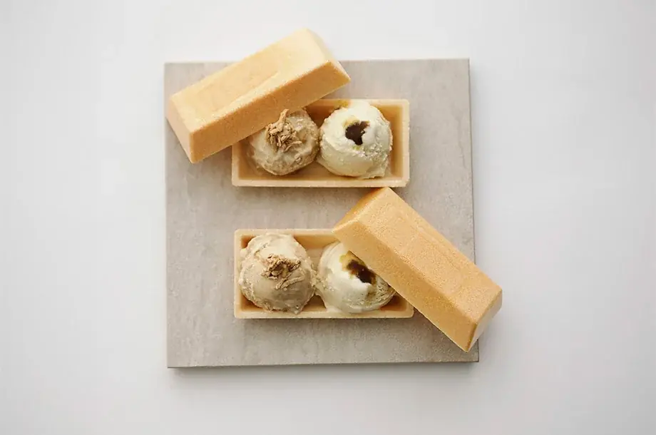 | 種子島・沖ヶ浜田黒糖 | ヒオ アイスクリーム(新館地下2階) | 琥珀の最中サンド(黒糖・黒蜜、マスコバド糖とココナッツの2種アイス食べ比べ) | 1個 550円、50点限り |