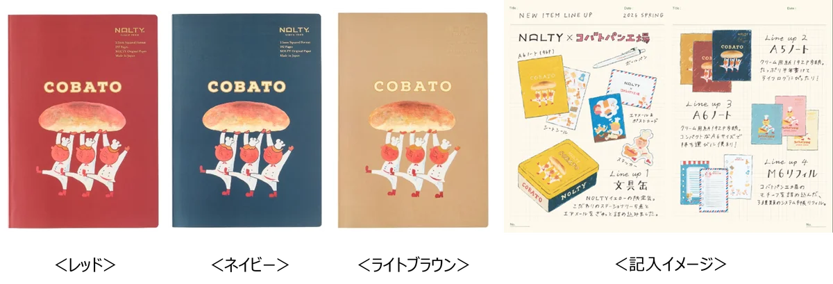 今回の企画は、NOLTYが手帳づくりで培った紙や使い勝手への知見を、コバトパン工場の“昭和レトロで懐かしいが新しい”ビジュアルと組み合わせることで、日常の筆記や手帳の時間を豊かにする文具の展開を目指しています。コッペパンのモチーフや店頭で人気の缶デザインを反映したアイテムは、文具好きのみならず、コバトパン工場の世界観を求める層にも訴求するラインアップです。