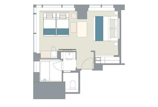 客室は角部屋として2面の窓を持ち、昼夜で表情を変える窓外の景観が滞在の大きな魅力となるよう設計されています。