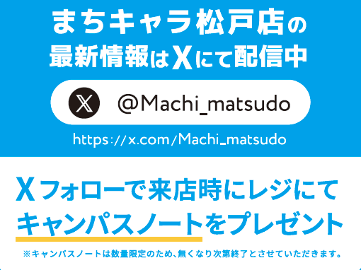 • まちキャラ松戸店のXアカウントをフォローした方にキャンパスノートをプレゼント
