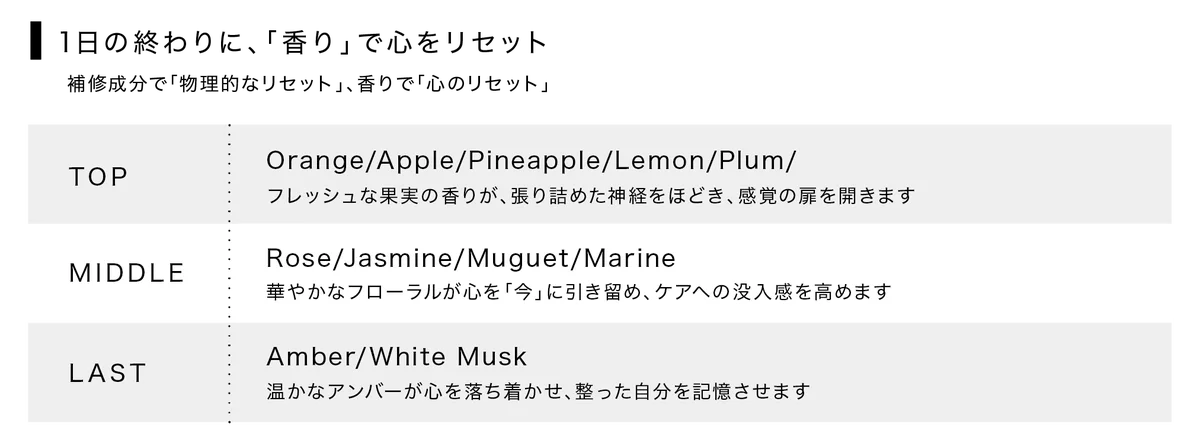 したがって、現時点では使用回数や適用量、香調(トップ・ミドル・ベースノート等)の詳細はプレスリリース本文には含まれていないことを明記しておきます。