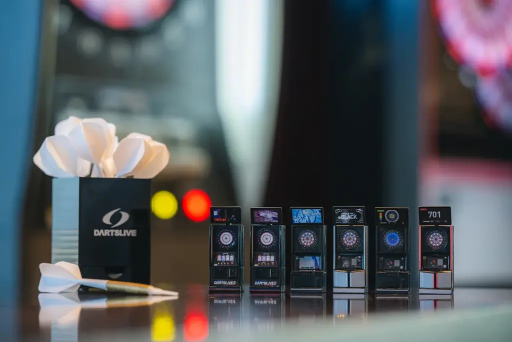 「ダーツライブ」シリーズはオンラインダーツマシンとして国内で設置台数第1位を誇り、月間1600万プレイ(※計測は2025年4月1日時点)という利用実績を持つブランドです。シリーズには、LEDが光る盤面や通信対戦、オリジナルのパーティーゲームを搭載した「ダーツライブ2」、タッチパネル操作やフルビットセンサー、矢の速度計測などの機能を盛り込んだ「ダーツライブ3」などがあり、技術的な進化を続けています。
