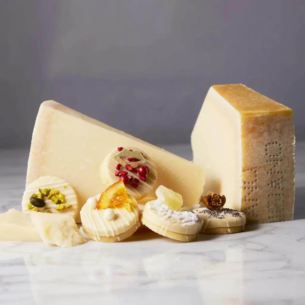 新作の特徴を素材と調理法の観点から整理します。レザン フロマージュはラムレーズンとシャンパンの香りを組み合わせ、発酵バターを用いたクッキー生地で余韻を出す構成です。ノーセル フロマージュは24ヶ月熟成のパルミジャーノ・レッジャーノをジャンドゥーヤ仕立てで活用し、チーズの旨味とナッツ・果実の甘酸っぱさを調和させています。