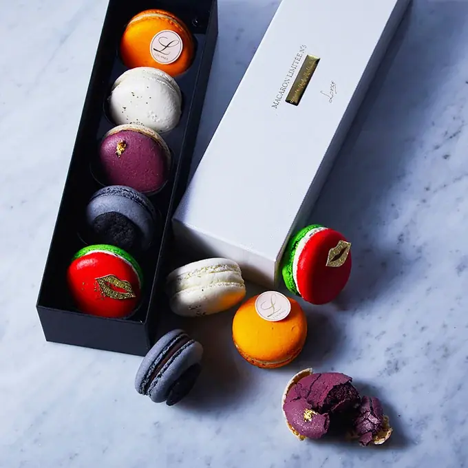 | マカロン リュクス | 2層構造。黒トリュフ、ゴルゴンゾーラ、フォアグラ等を使用。カラフル。 | ¥4,200 | 5個入 | 銀座店・六本木店・オンラインストア |