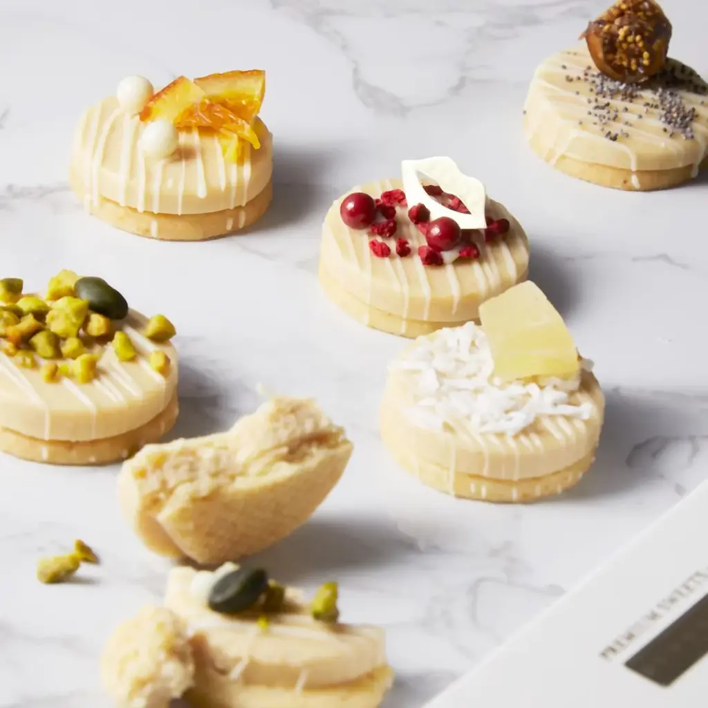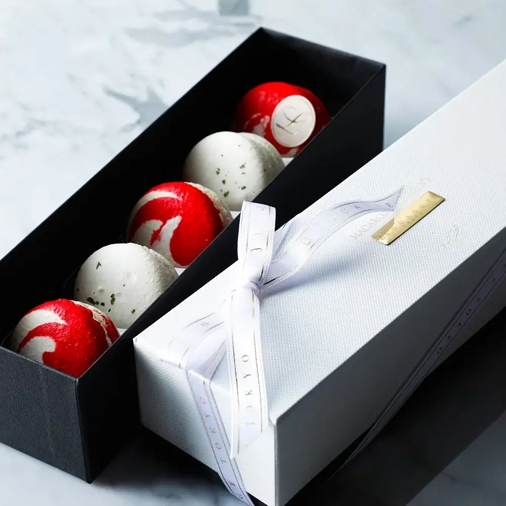 小分けで贈りやすいマカロン各種や、世界大会優勝パティシエによるボンボンショコラ、ショコラサンドなど、ギフト用途に適したアイテムが充実しています。素材の組み合わせや二層構造など、食感や香りのコントラストに重点を置いた商品が多い点が特徴です。