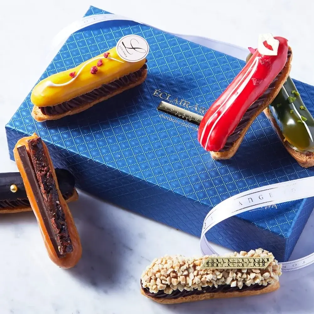 - エクレアート ショコラ プレミアム:6個入 ¥4,300(銀座店・六本木店・オンラインストア)— あまおう×ライム、バニラ×マラカイボ65、コーヒー×キャラメル、パッション×フランボワーズ、ピスタチオ×グリオット、プラリネ。
