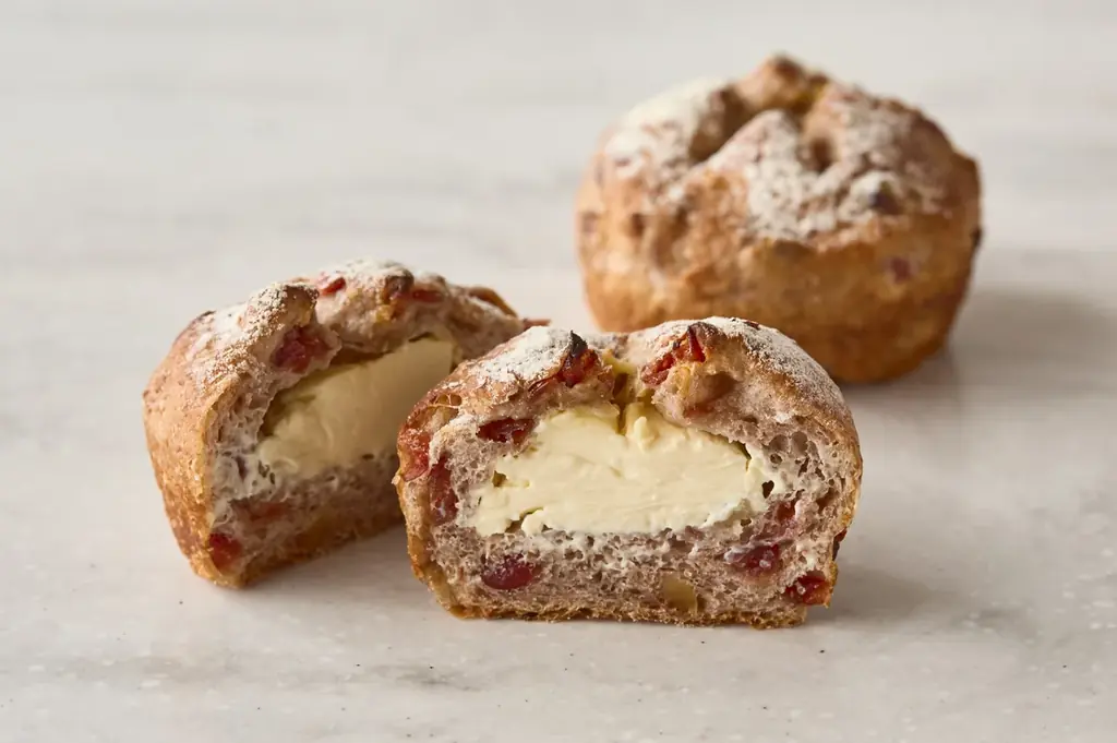 - くるみクランベリーチーズ 401円:ローストしたくるみとクランベリーを練り込み、はちみつとクリームチーズを包んでミニスキレットで焼成。クランベリーの甘み、くるみの香ばしさ、クリームチーズのまろやかさが重なる。