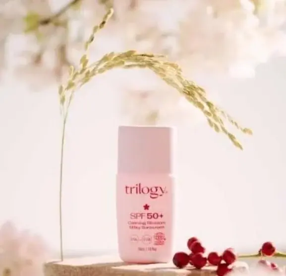 トリロジー(取り扱い) カーミングブロッサム ハイドラシートマスク(770円)、カーミングブロッサム UVミルク(3,080円) 取扱:8階「コスメキッチン」
