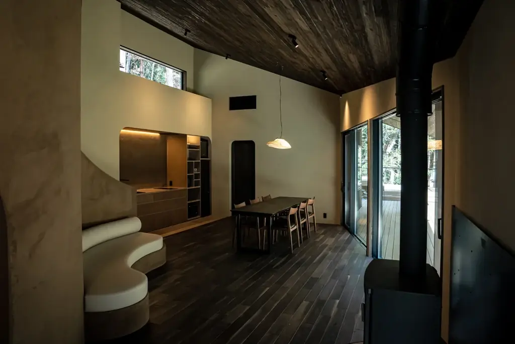 施設には薪ストーブを設置しており、冬季でも暖かく過ごせるように配慮されています。炎を見つめる時間そのものが思考をほどく体験として位置づけられています。