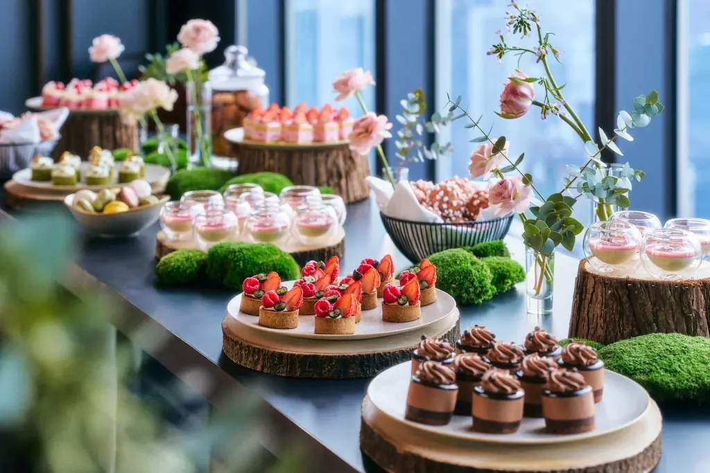 デザートはビュッフェ形式で好きなだけ楽しむことができ、トロリーとビュッフェを組み合わせた動的なダイニングを体験できます。