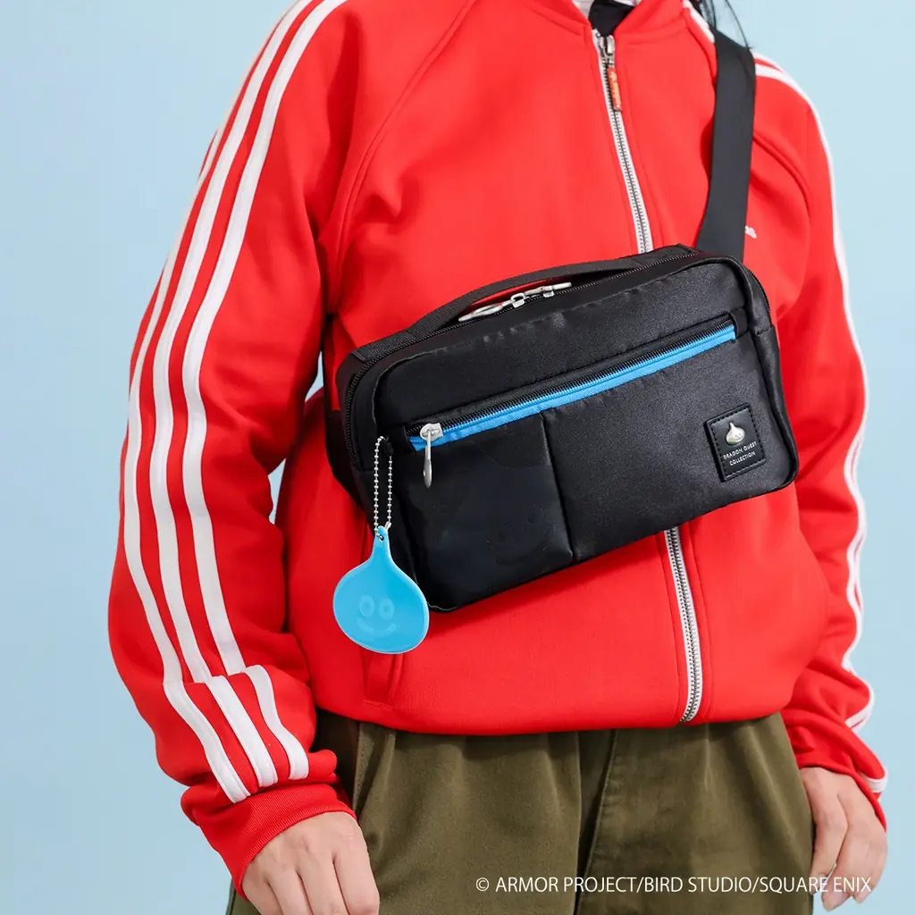 - ボックスボディバッグ(スライム/メタルスライム):コンパクトながらスマホ・財布等を収納。フロントにスライムプリント、引手にもスライムモチーフ。希望小売価格 7,590円(税込)
