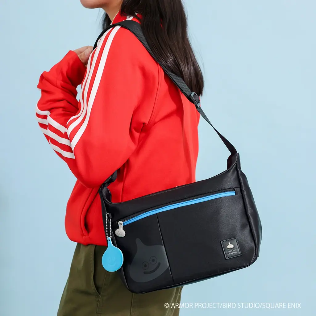 - ショルダーバッグ(スライム/メタルスライム):引手にスライムデザイン、内装にポケット3つ。希望小売価格 7,590円(税込)