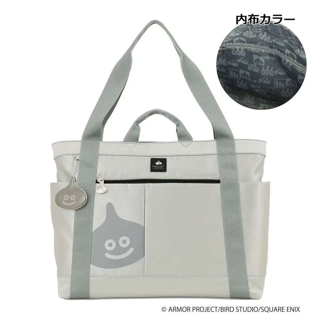 - トートバッグ(スライム/メタルスライム):ポリエステル素材でA4やノートPCが収納可能。ファスナー引手にスライムモチーフ。希望小売価格 9,900円(税込)