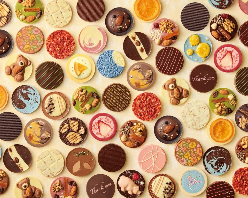 パレショコラは直径6cmの丸い板チョコレートで、素材選び、厚み、食感にこだわったオリジナルショコラです。豊富なバリエーションを通じて、サクッとした食感や口どけの違いを楽しむことができます。