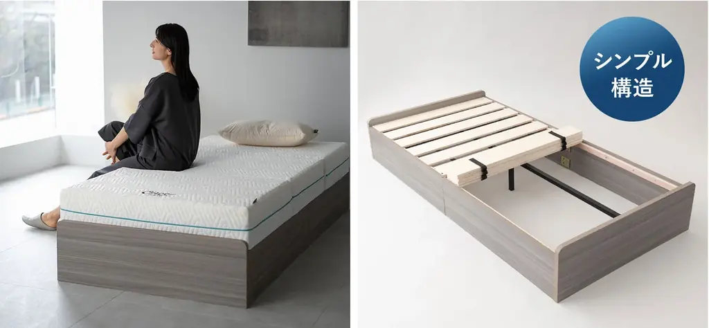 実用面では中央フレームによる荷重支持により耐荷重 約200kgを確保し、寝ているときや立ち座りの際にマットレスがズレにくい構造となっています。可動パーツを極力使わないシンプルな内部構造は、きしみの発生を抑え、長期使用における信頼性を高める設計です。