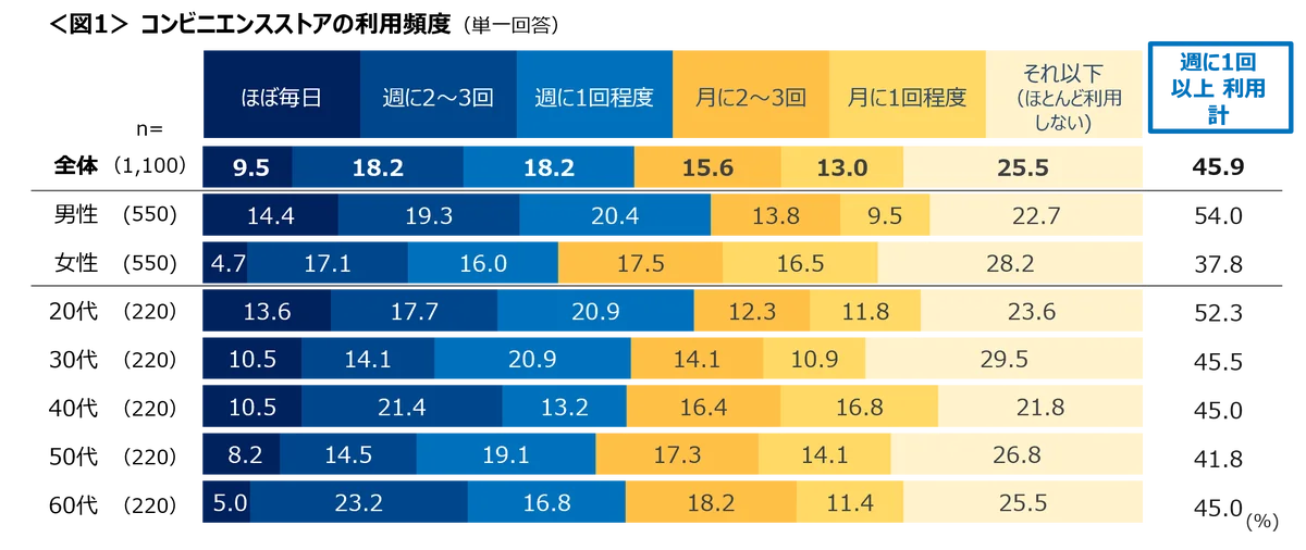 コンビニ利用実態まとめ:週1回以上45.9%